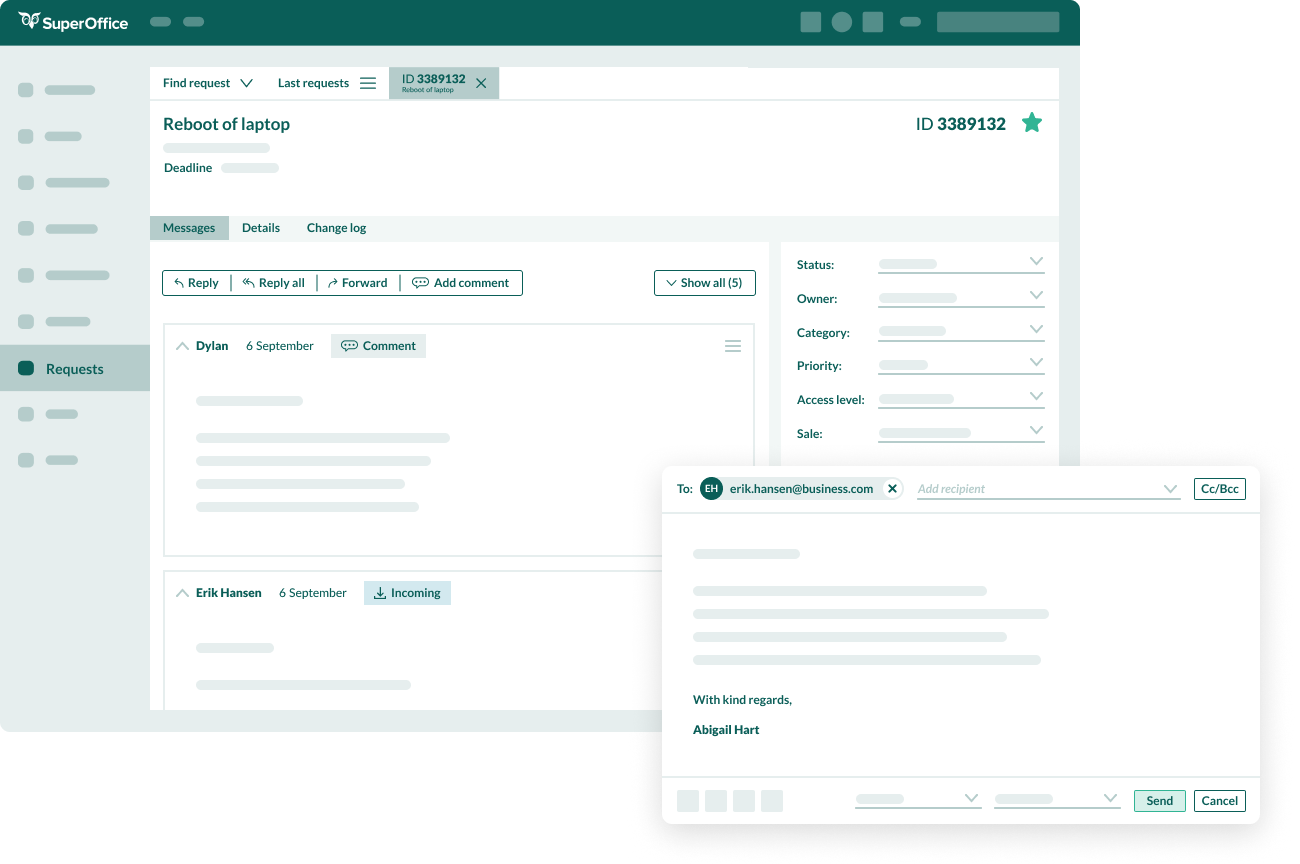 Gecentraliseerde aanvragenBehandel alle typen verzoeken vanaf één platform, gecategoriseerd volgens ticketwachtrijen direct in SuperOffice. Dit kunnen zowel externe als interne verzoeken zijn.