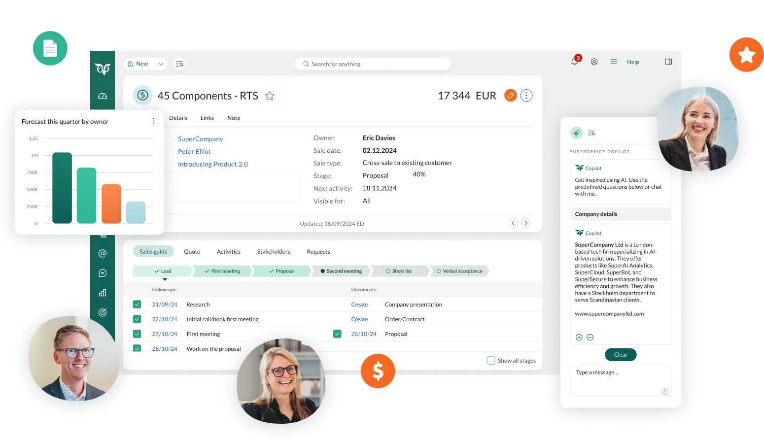 Besteed de juiste tijd aan verkoop met SuperOffice Sales – een intuïtieve CRM oplossing. Verhoog de doeltreffendheid van je verkopers met behulp van AI : betere analyses voor managers, realiseer targets en vergroot de omzet.