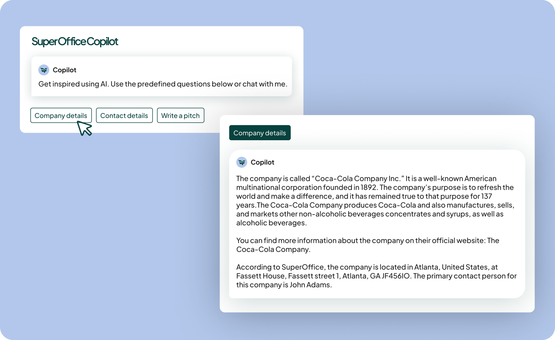 - Krijg onmiddellijk antwoorden over je prospects van SuperOffice Copilot