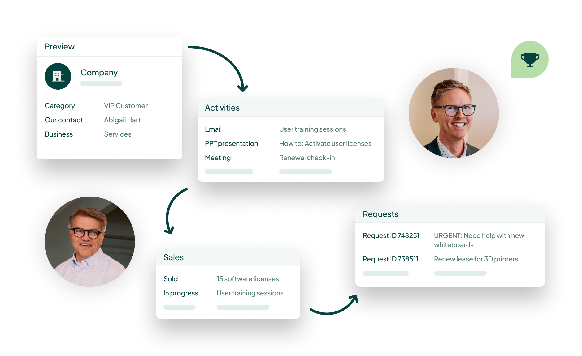 Je team beschikt over belangrijke klantkennis en veerkracht. Door ERP en CRM te combineren worden cruciale inzichten vastgelegd en tussen teams gedeeld, zodat waardevolle informatie behouden blijft en groeit – ook tijdens personeelswisselingen.