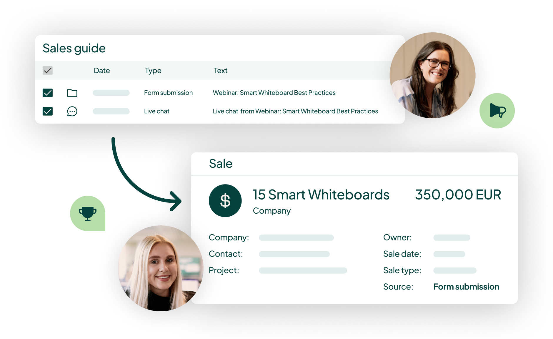 Verbind marketing- en salesinspanningen zodat ze als één kracht naar hetzelfde doel toewerken. Borg de communicatie, voorkom dubbel werk en leg de basis voor goede samenwerking.