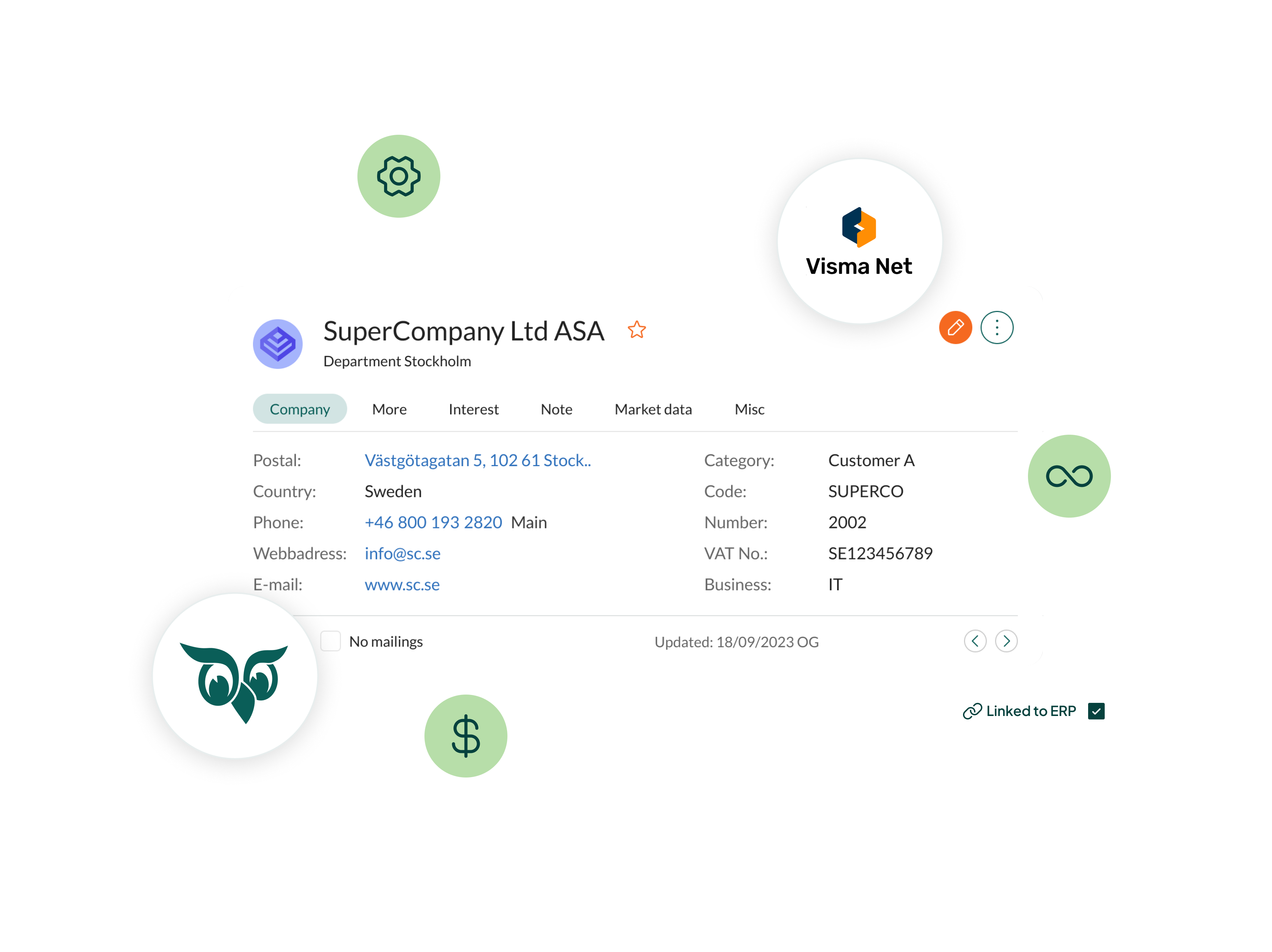 Met de native ERP-integratie synchroniseer je al je belangrijke data zonder externe partijen die vertraging veroorzaken. Van setup tot schaalvergroting: SuperOffice groeit met je mee.