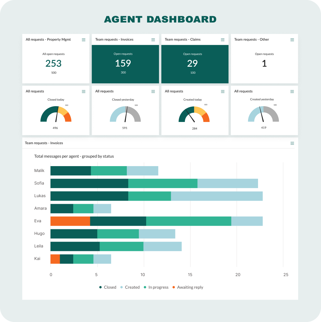 But HSB quickly discovered that introducing a dedicated team dashboard brought the service team closer together by visually presenting their shared team goals. This allowed the team to work together to handle tickets they could visibly see were being tackled by the whole team.