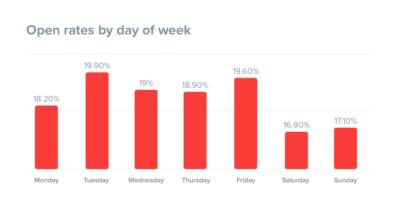 Onderzoek van Get Response ontdekte dat de beste dag om mailings te verzenden en het hoogste open ratio te realiseren, een dinsdag is.